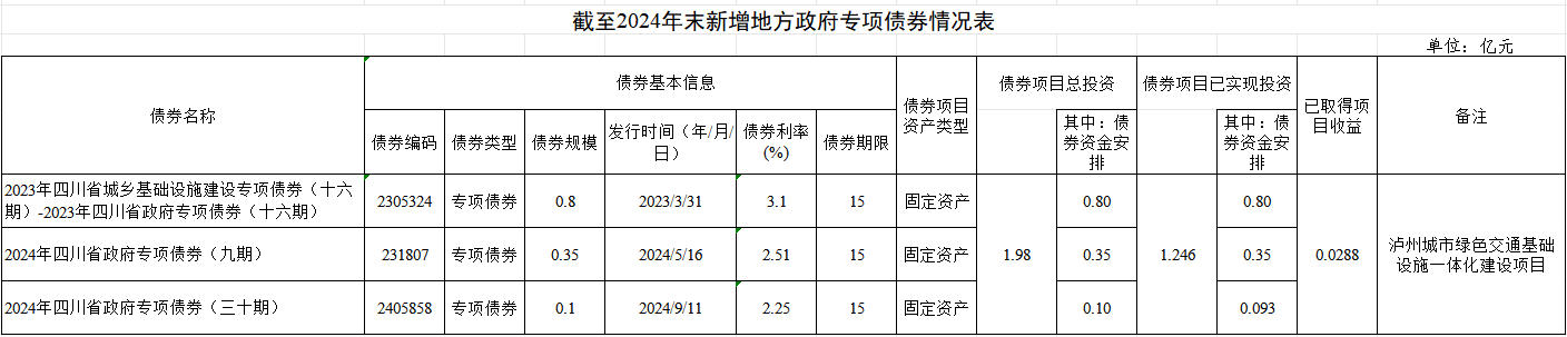 瀘州市公共交通集團(tuán)有限公司截止2024年末新增地方政府專項(xiàng)債券存續(xù)期信息公開